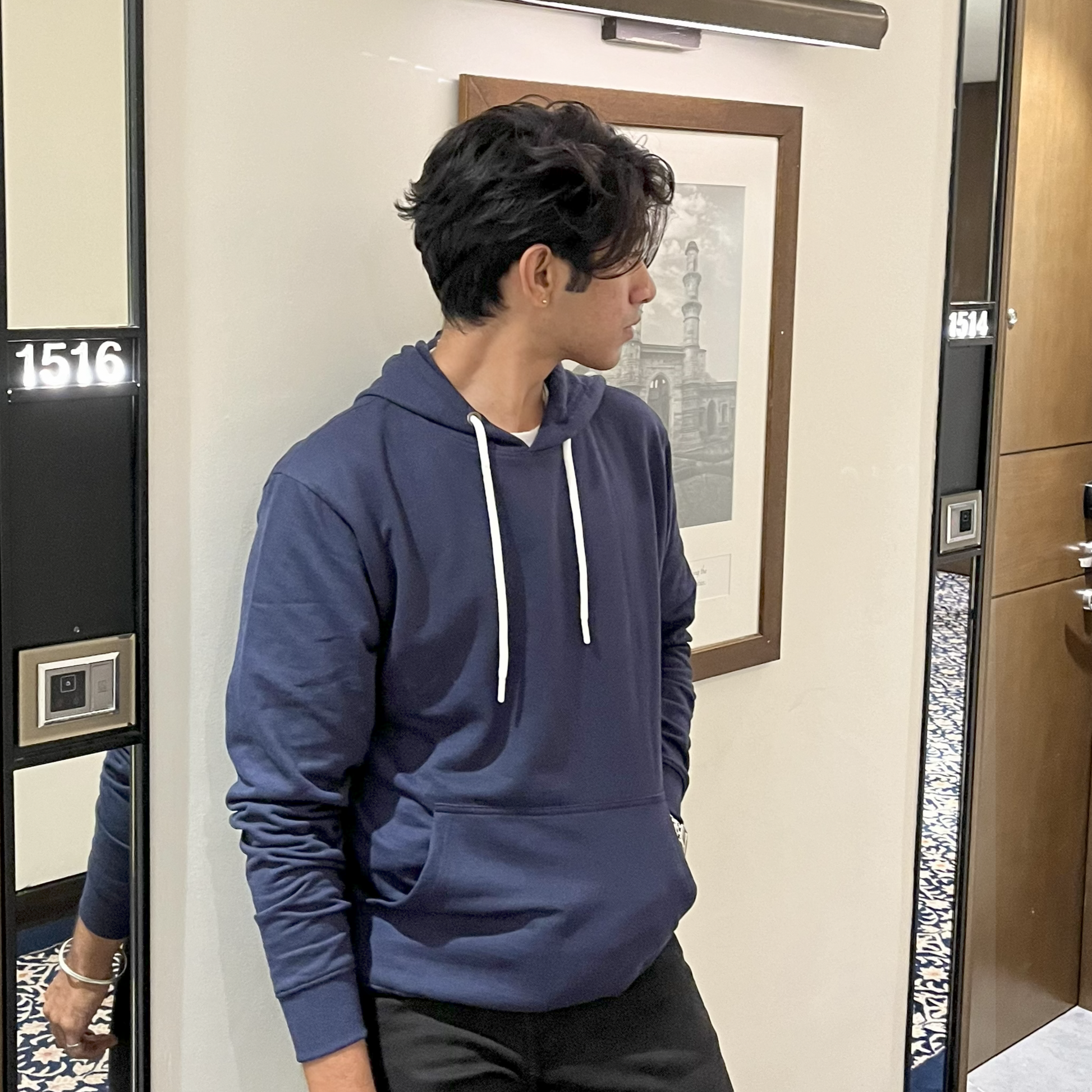 Step confidently into any setting with the Midnight Navy Hoodie.